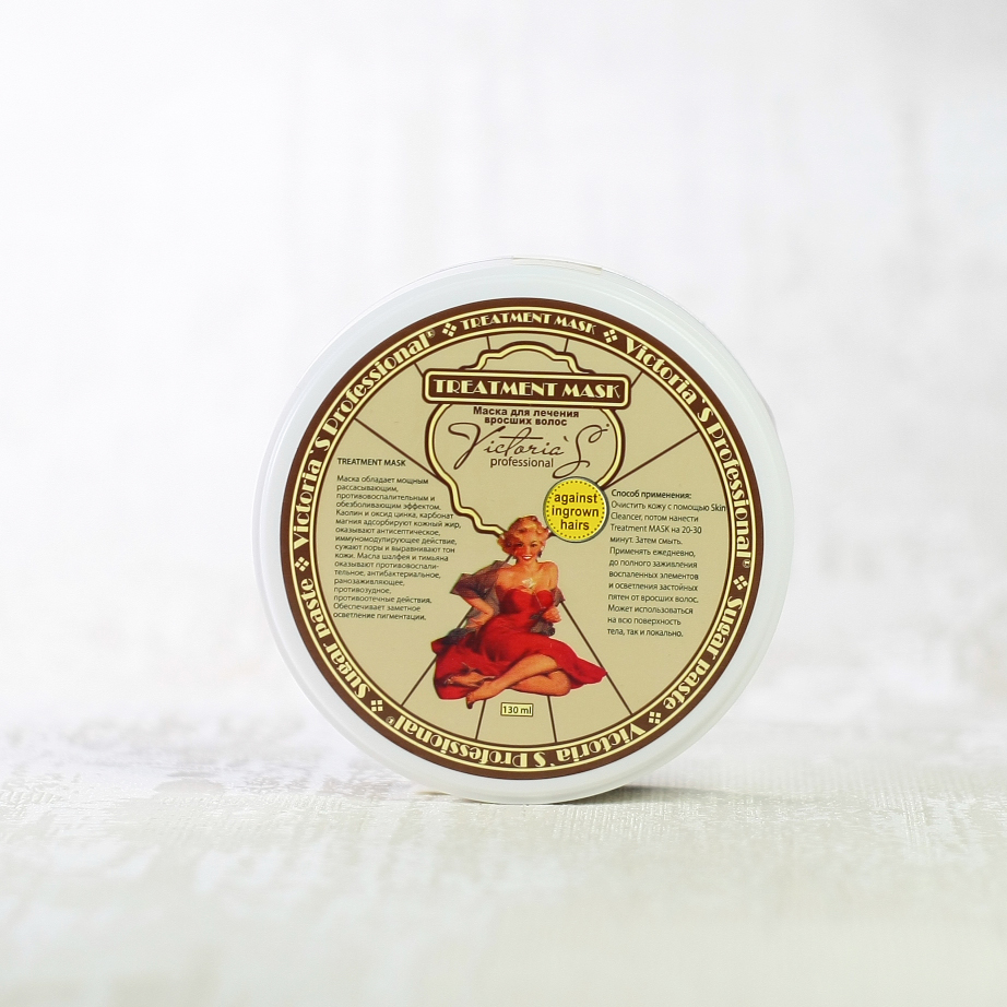 Маска Treatment MASK 130 г Victoria`s Professional лечит гнойные воспаления от вросших волос, за счет ихтиола и лактата натрия. Маска для кожи тела и лица также содержит оксид цинка, каолин, и магния карбонат, которые подсушивают воспаления.