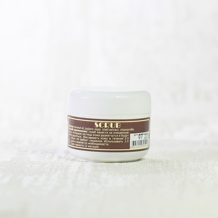 Скраб для тела SCRUB 30 г предназначен для отшелушивания роговых частиц, с целью профилактики врастания волос под верхний слой кожи. За счет легкого кокосового масла и абразива грецкого ореха мелкой фракции происходит одновременное увлажнение и отшелушивание омертвевших клеток.